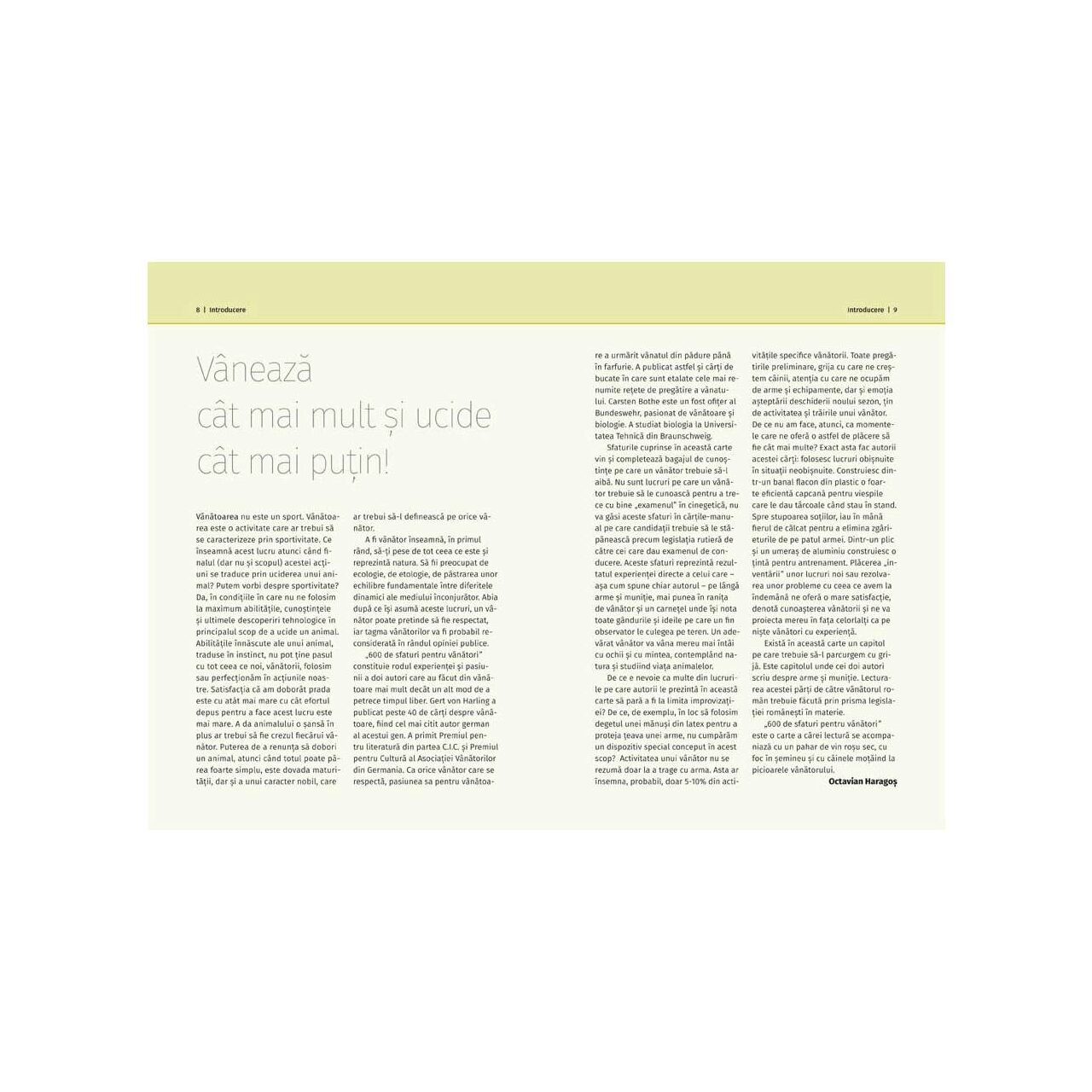 Cartea de faţă se doreşte un ghid atât pentru vânătorii începători, aflaţi la primele încercări cinegetice, cât şi pentru cei avansaţi, care cu siguranţă doresc să-şi perfecţioneze tactica de vânătoare şi să acumuleze cunoştinţe noi.