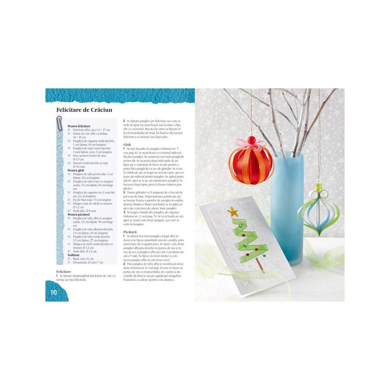 Panglicile reprezintă un accesoriu nelipsit al sărbătorilor. Studiind modelele din această carte veţi vedea că în afară de faptul că sunt indispensabile în activitatea de împachetat cadouri, din panglici de culori şi mărimi diferite se pot confecţiona decoraţiuni mignone cu care se împodobesc ferestrele, brazii de Crăciun sau cutiile de cadouri.
