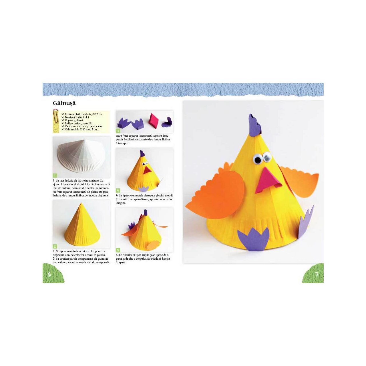 Iubitorii de lucru manual ştiu deja că din farfurii de hârtie se pot confecţiona figurine interesante şi frumoase. Culori, pensule, foarfeci şi lipici se găsesc în aproape orice gospodărie, prin urmare nu ne rămâne decât să achiziţionăm un pachet de farfurii de hârtie şi avem deja toate materialele necesare pentru realizarea modelelor amuzante din această carte.