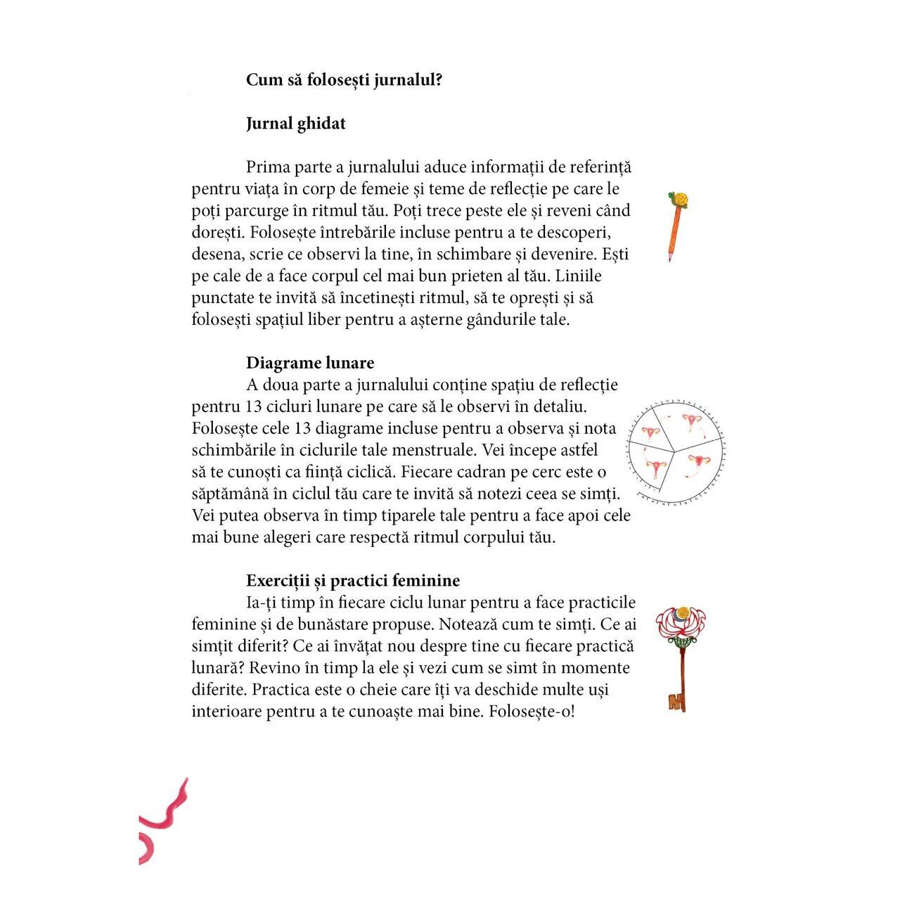 - spațiu pentru urmărit ghidat 13 cicluri lunare/menstruale.