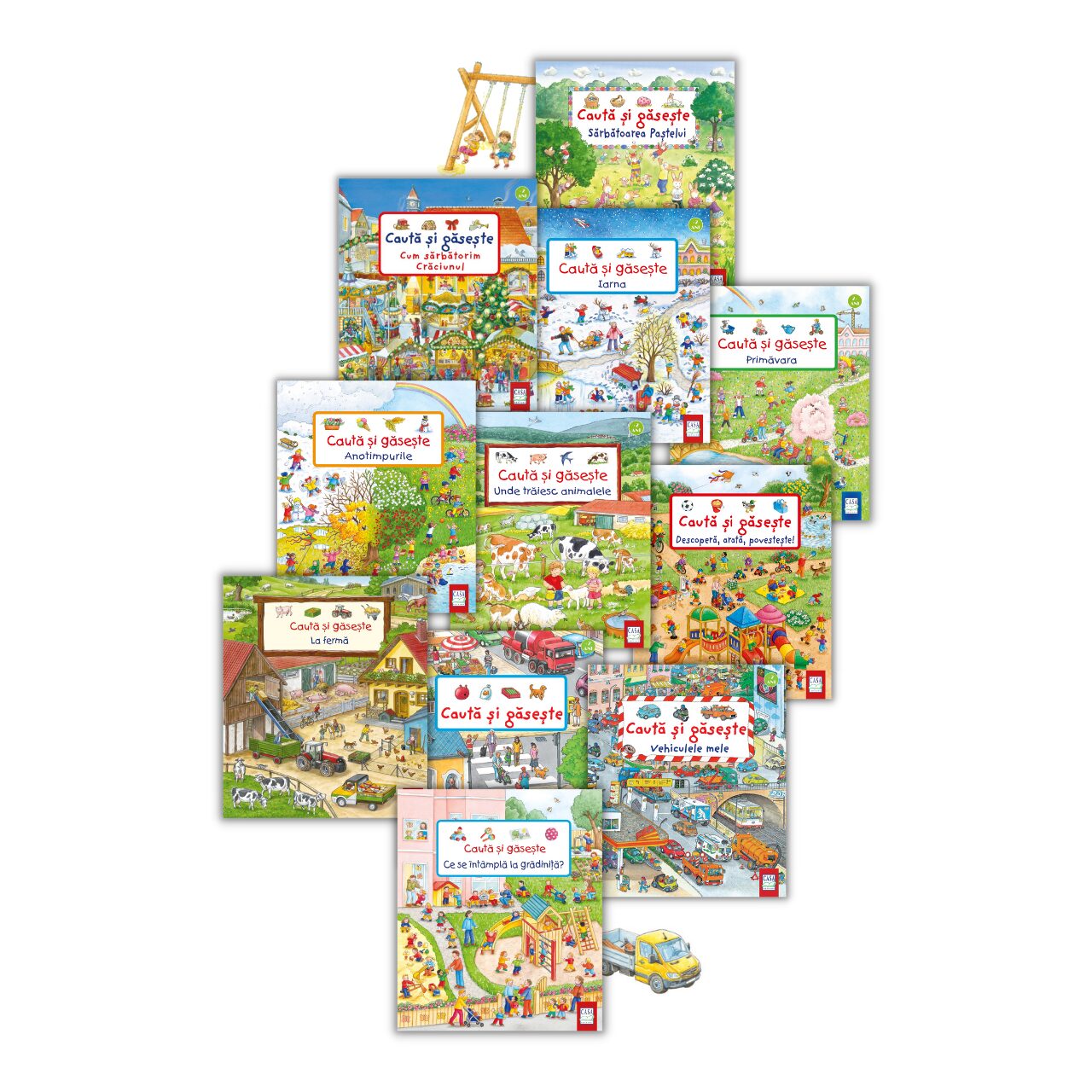 Unsprezece cărți din seria „Caută și găsește” - o mică bibliotecă cu primele povești în imagini.