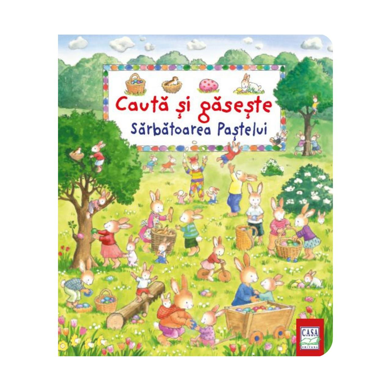 Imaginile bogat ilustrate ale acestei cărți integral cartonate îi invită pe copii pe un teren de joacă plin de culoare unde pot căuta și găsi o serie de obiecte specifice sărbătorii Paștelui sau din viața de zi cu zi, îmbogățindu-și în acest mod vocabularul și dezvoltându-și capacitatea de observare și memoria.
