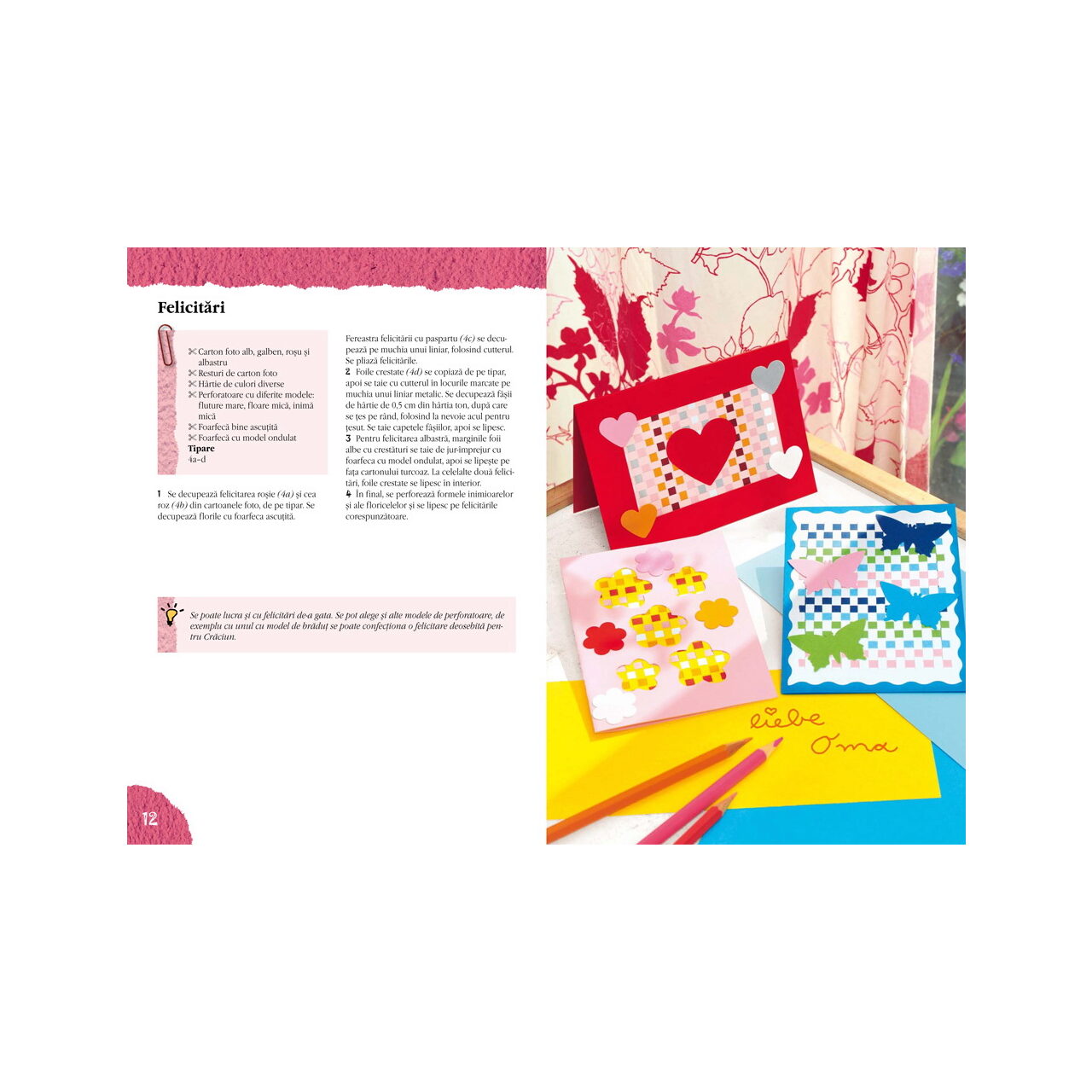 Ţeserea cu fâşii de hârtie este o tehnică foarte îndrăgită de copii, deoarece este simplă, iar rezultatul este deosebit de spectaculos. Decoraţiunile prezentate în această carte se pot confecţiona uşor, urmând indicaţiile şi şabloanele date, dar, după învăţarea paşilor de lucru, vă recomandăm crearea de modele proprii.